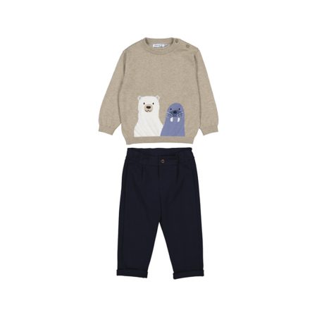 • Set Strickpullover und Hose Beige / Navy Walross Mayoral