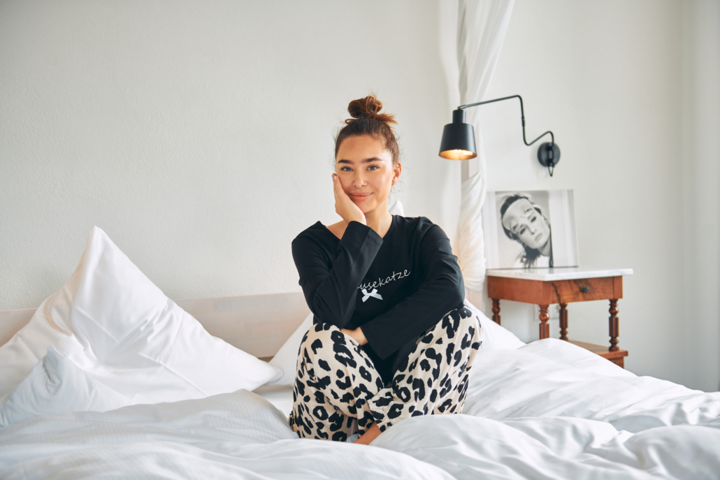 Pyjama Basic Damen „Schmusekatze“ schwarz / Leo allover Louis & Louisa
